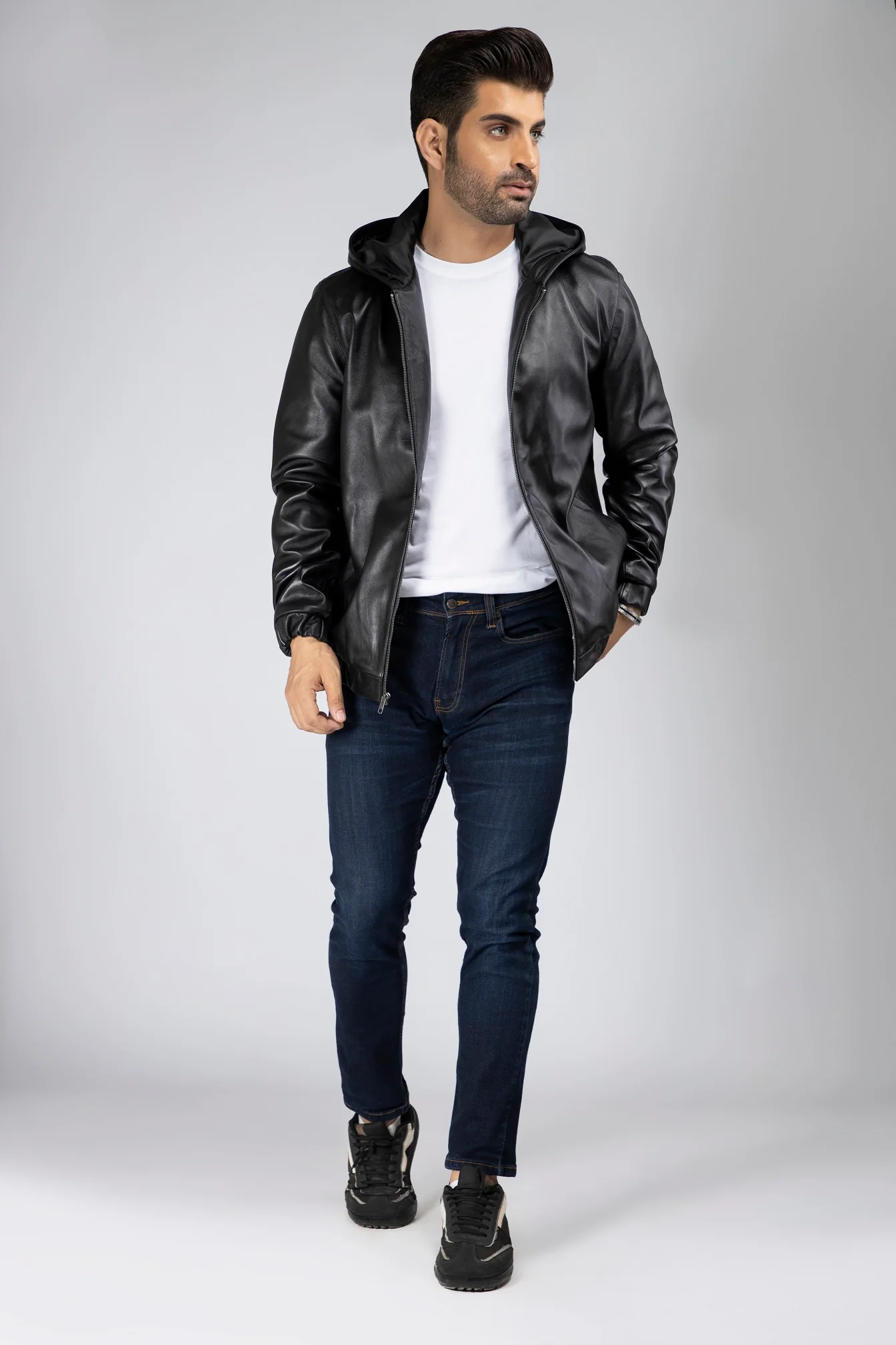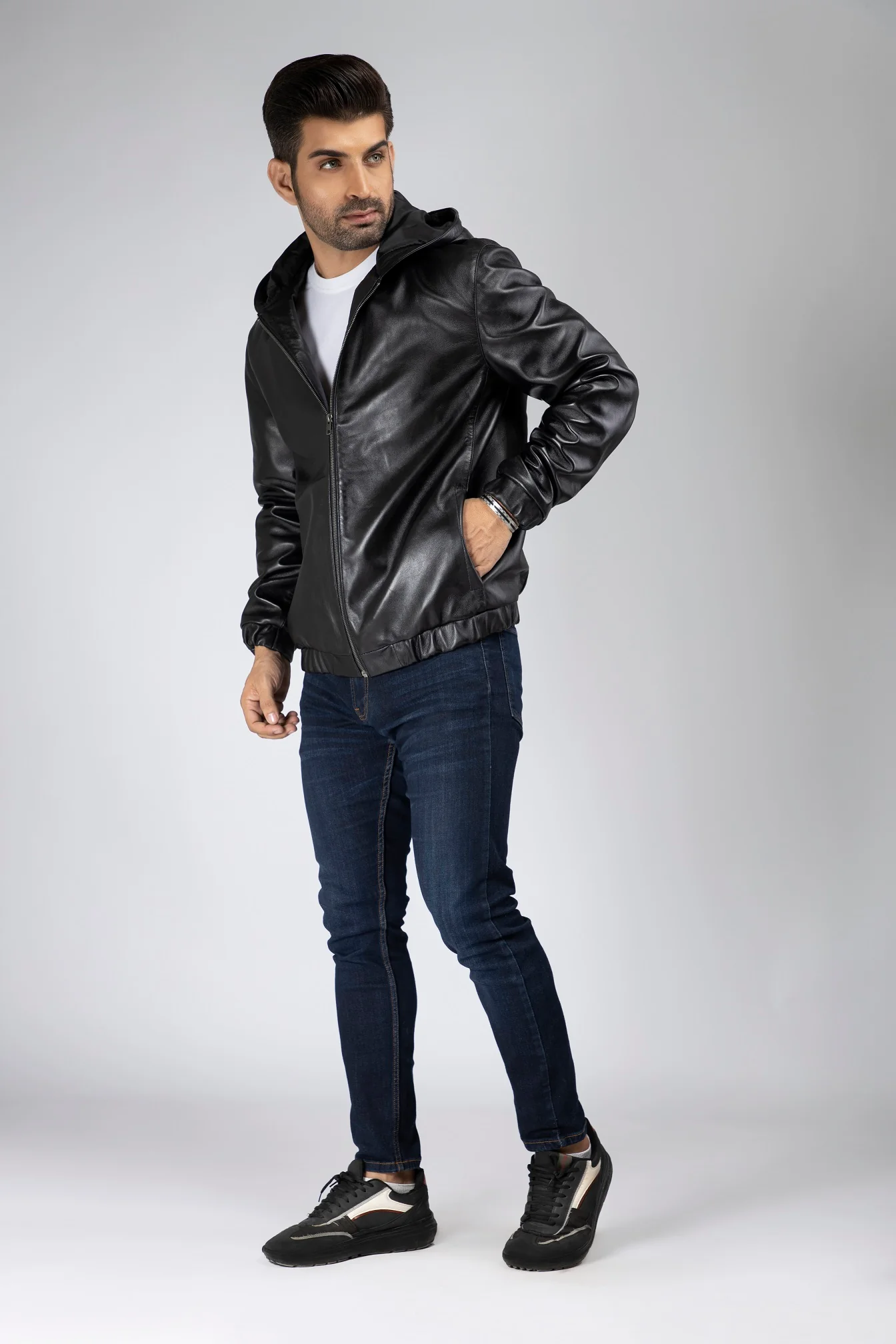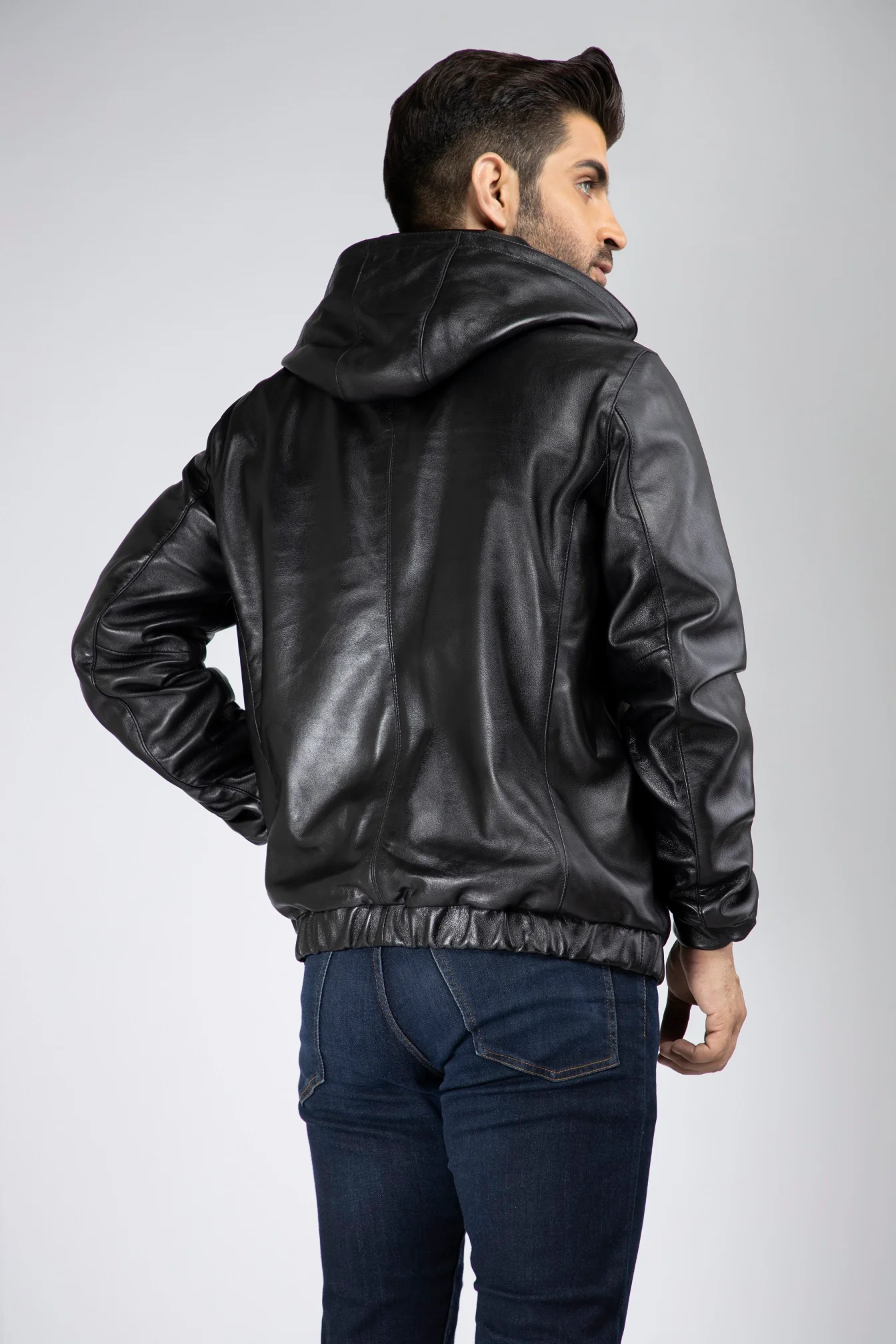 Men's soft, supple lambskin leather bomber jacket. Has a contemporary look and feels smooth and relaxed. Sweatshirt Style Leather Hoody Fully Lined 100% Real Leather. Satin Lining Stylish Wear.