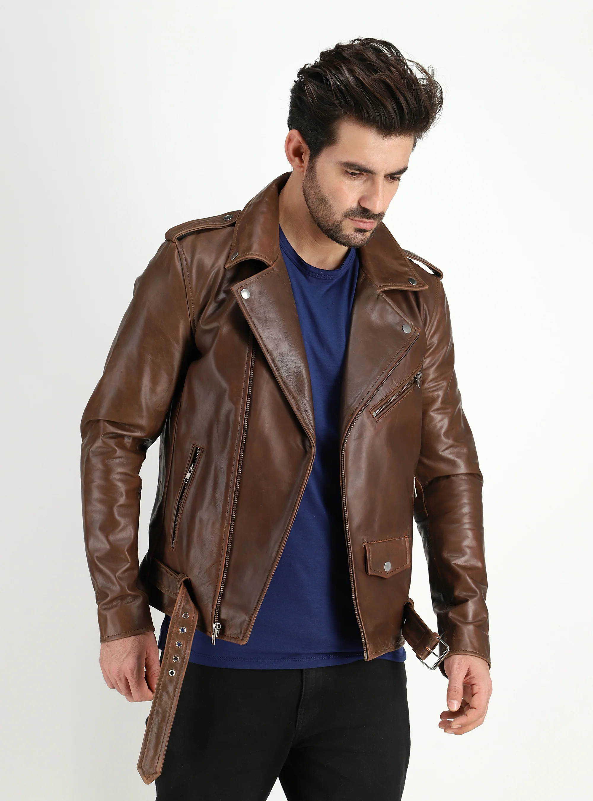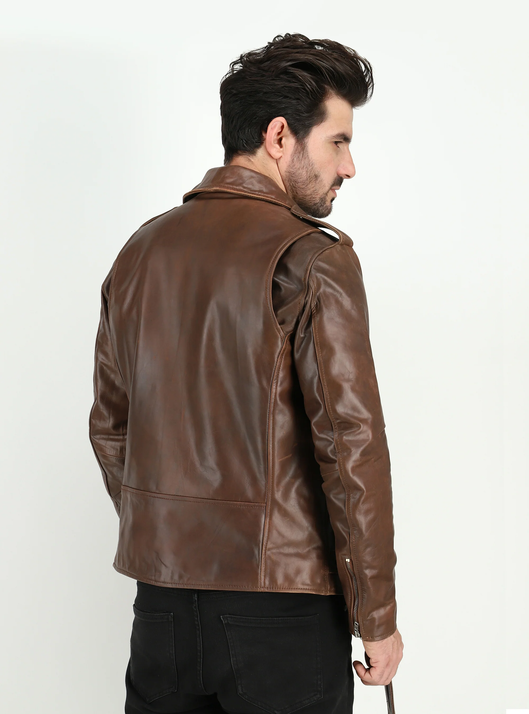 Classic Cruiser Motorcycle Biker Cowhide Leather Jacket