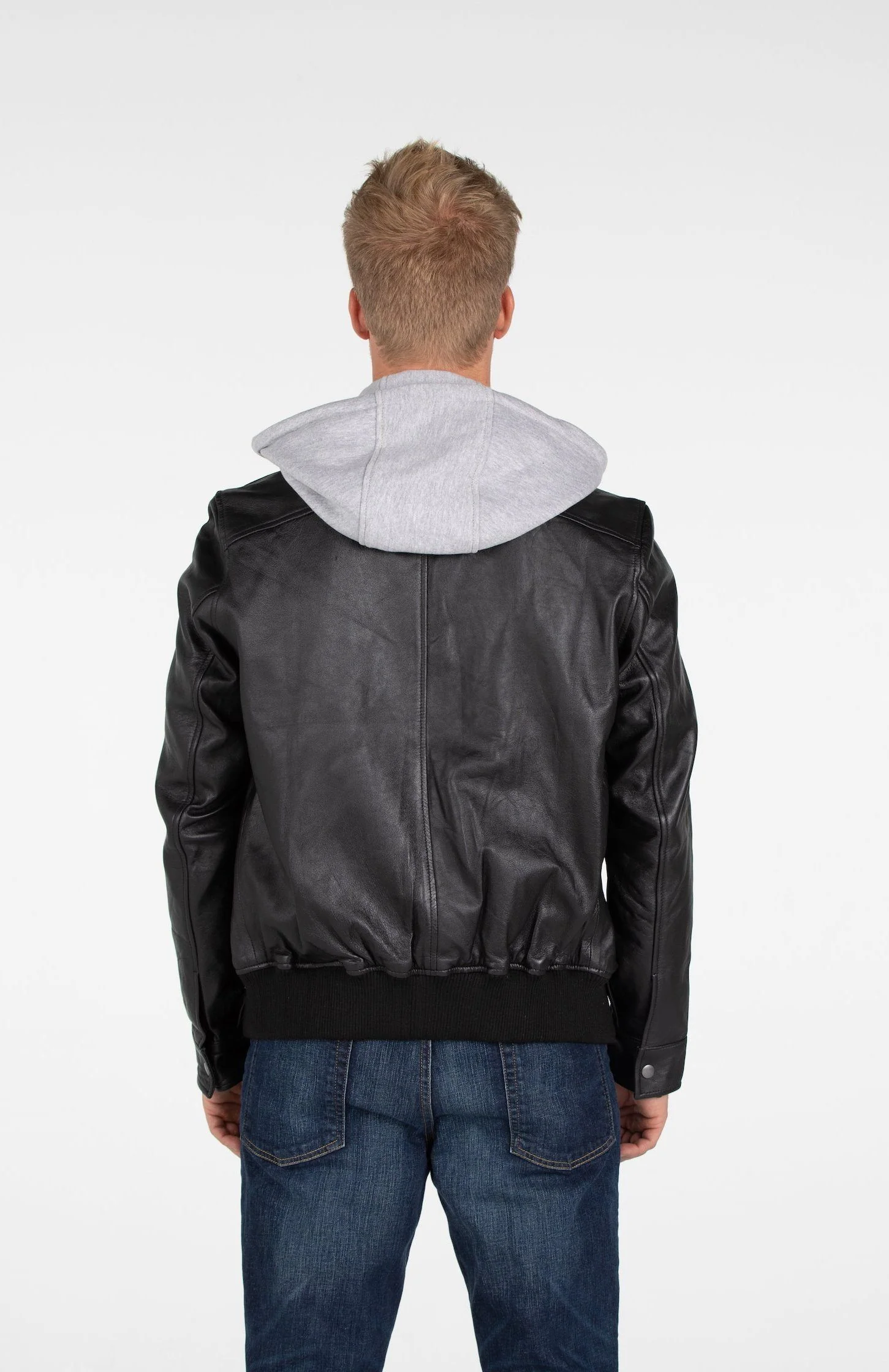 Men's soft, supple lambskin leather bomber jacket. Has a contemporary look and feels smooth and relaxed. Sweatshirt Style Hoody - Zipper Removable Fully Lined 100% Real Leather. Satin Lining Stylish Wear.