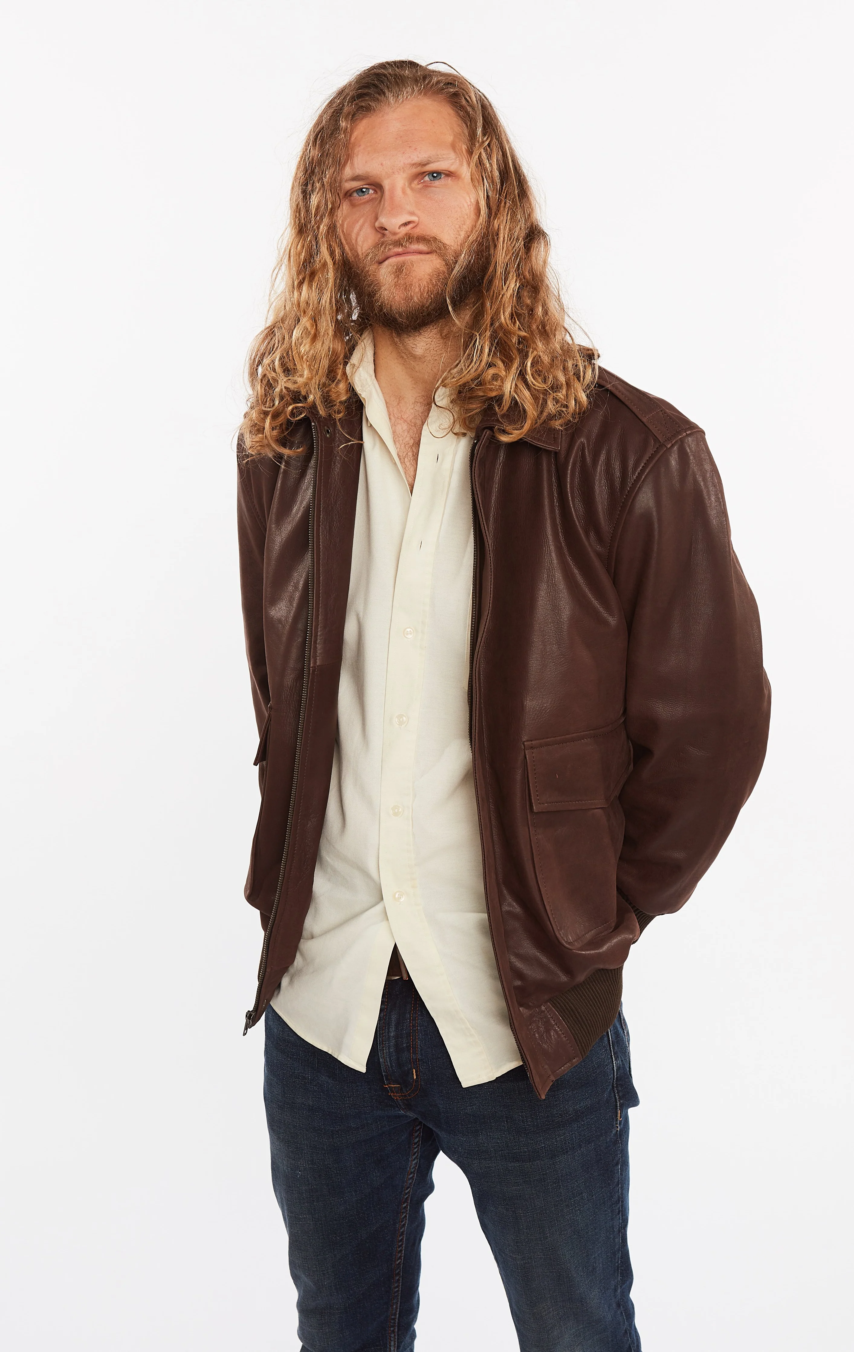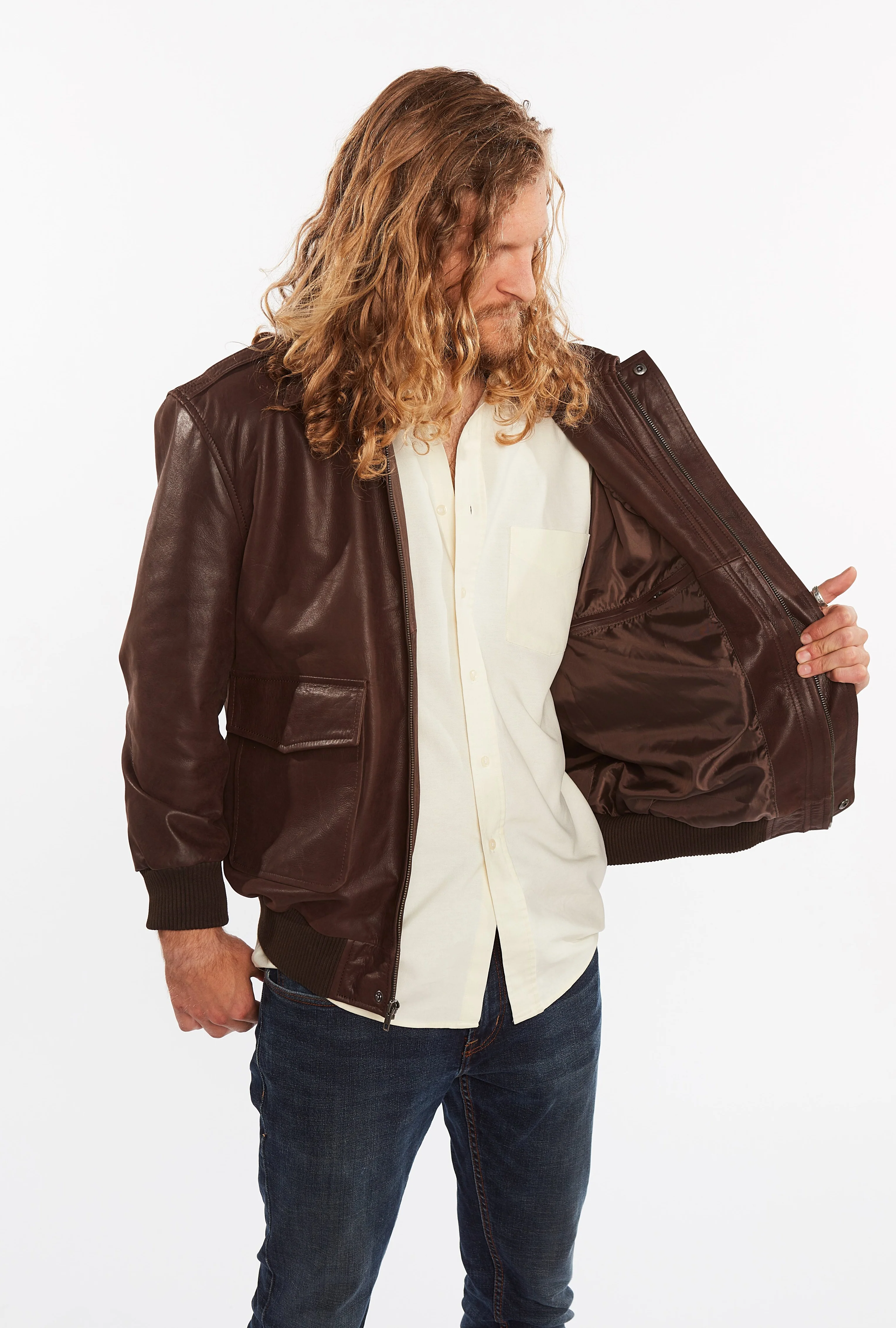 Mens Classic Bomber Jacket. A popular classic style cowhide bomber jacket, to match color knit rib on cuffs and waist. Suitable for cold weather whilst staying fashionable and comfy. Classy Vintage Brown Color. Very Popular Jacket!