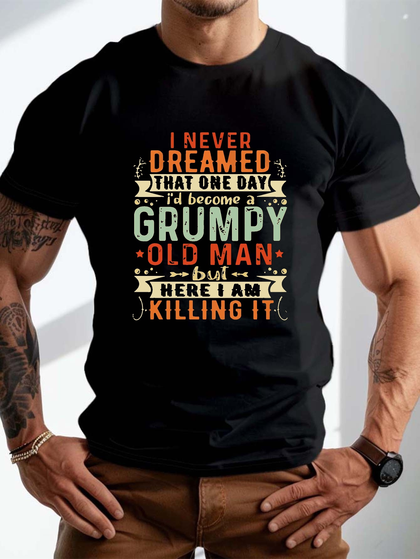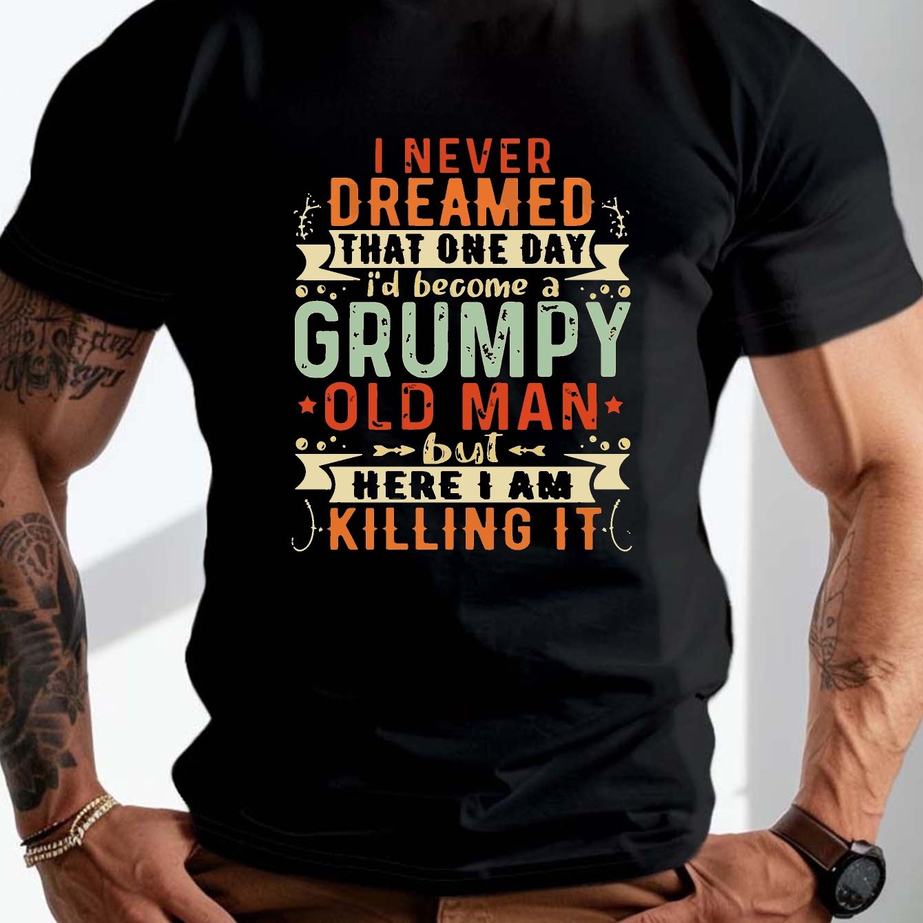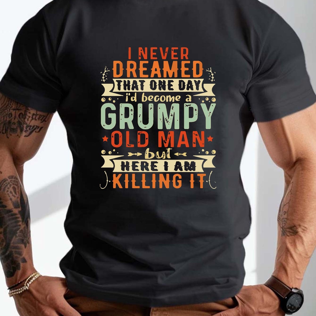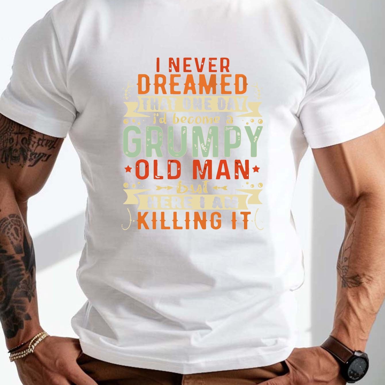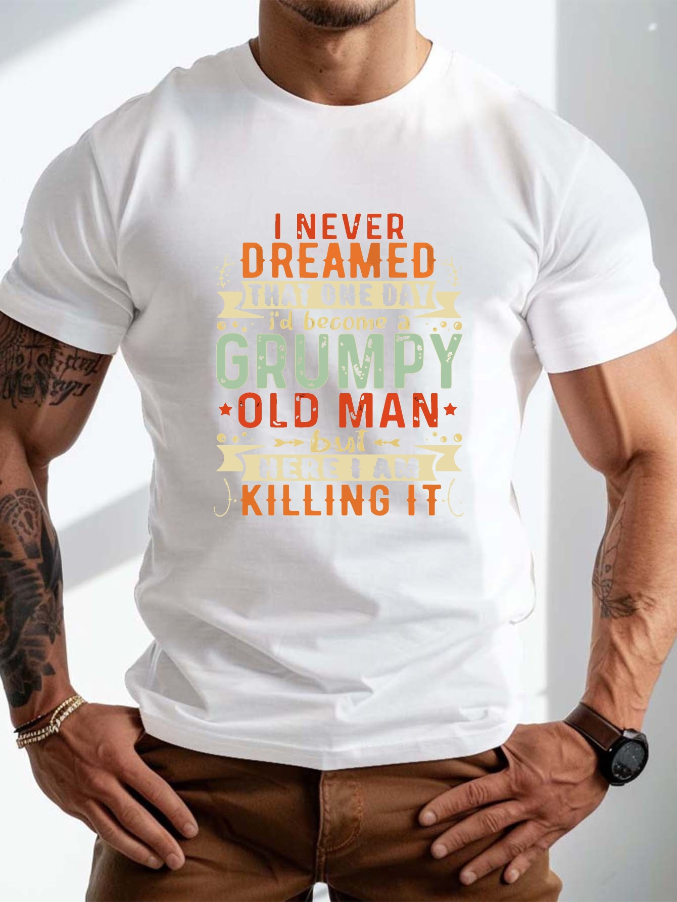 Plus Size Elder Men's Sweat-wicking Fashion Letters T-Shirt for Freedom of Movement