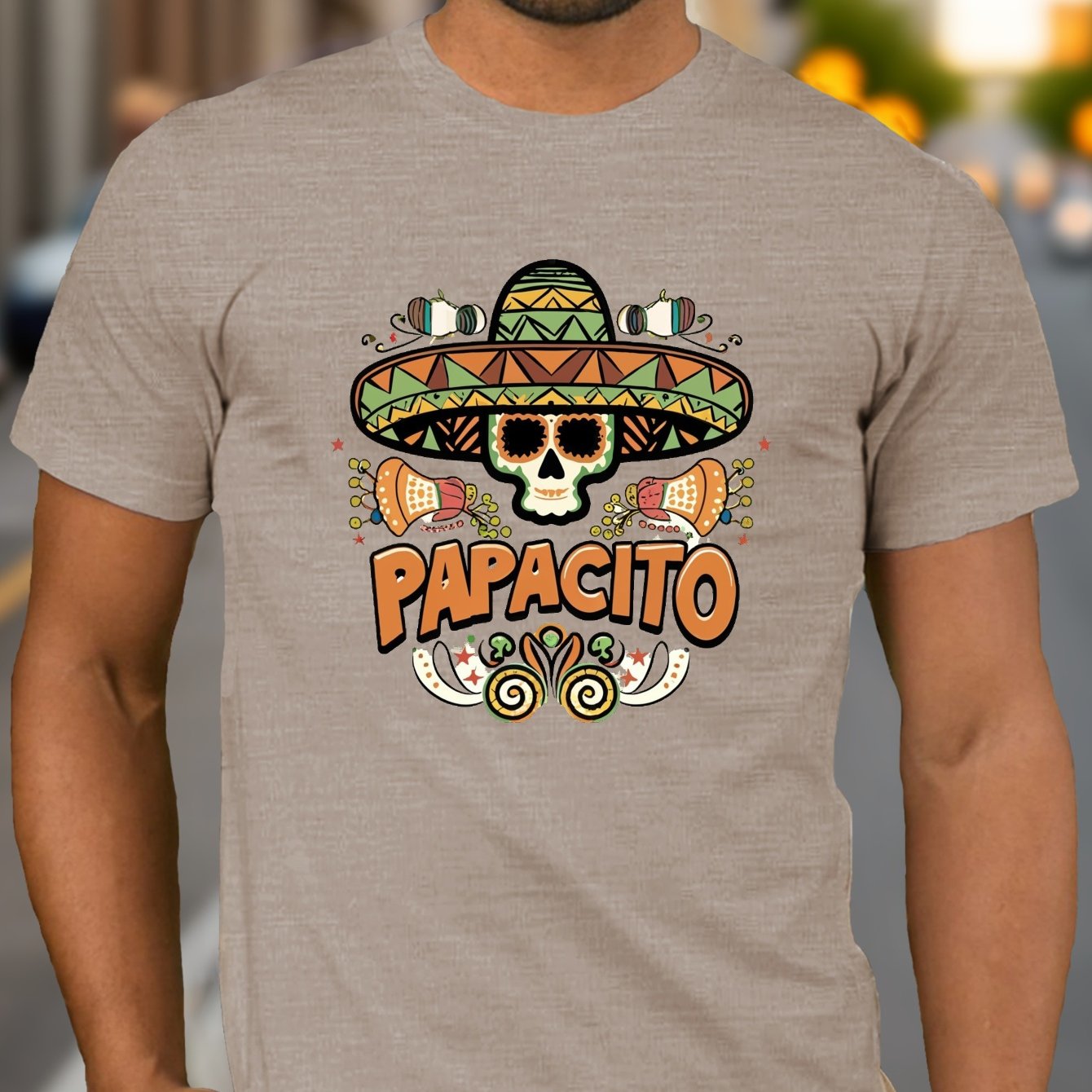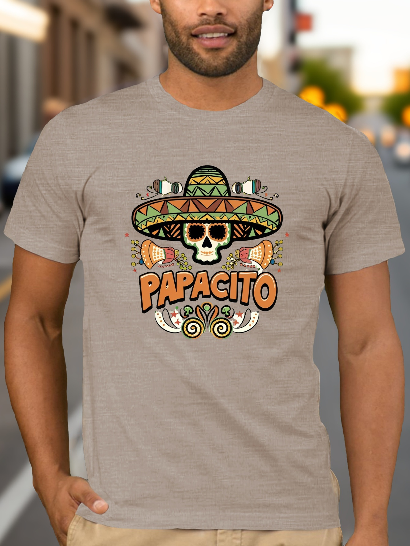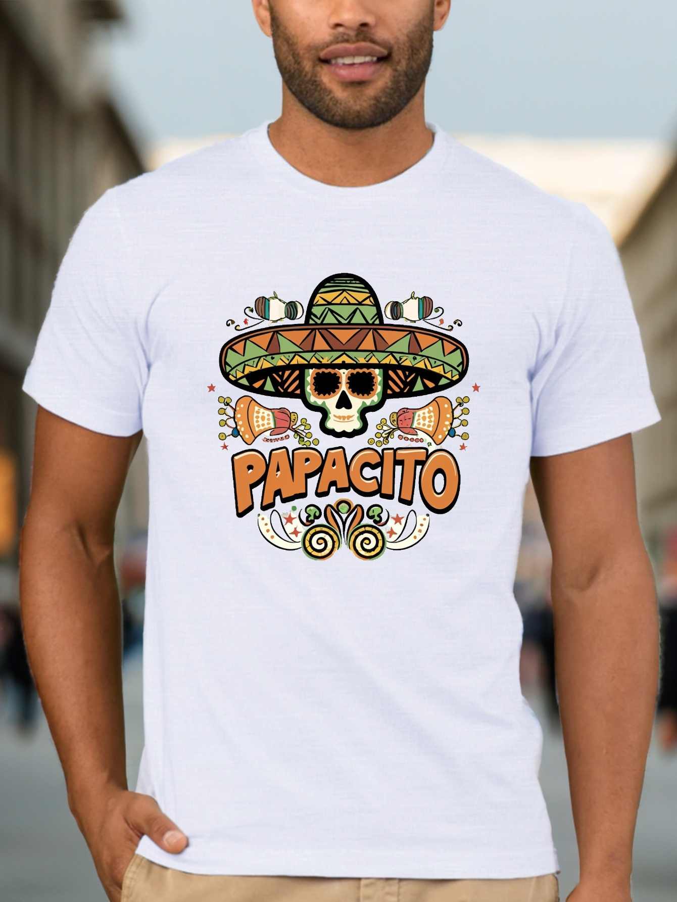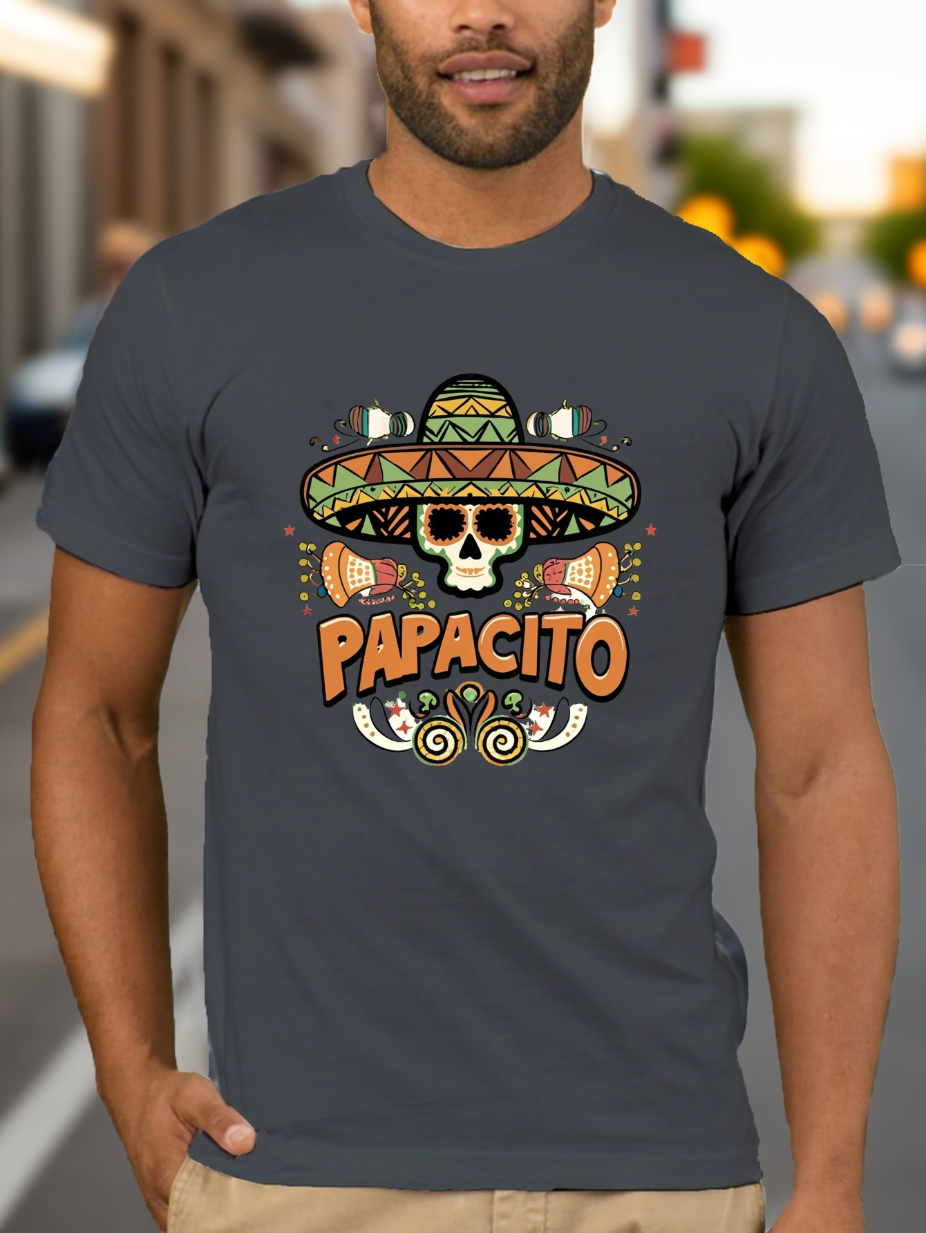 plus size men's summer t-shirt, Culture Papacito Mexican Style graphic print short sleeve tees trend casual tops for daily life, big & tall guys