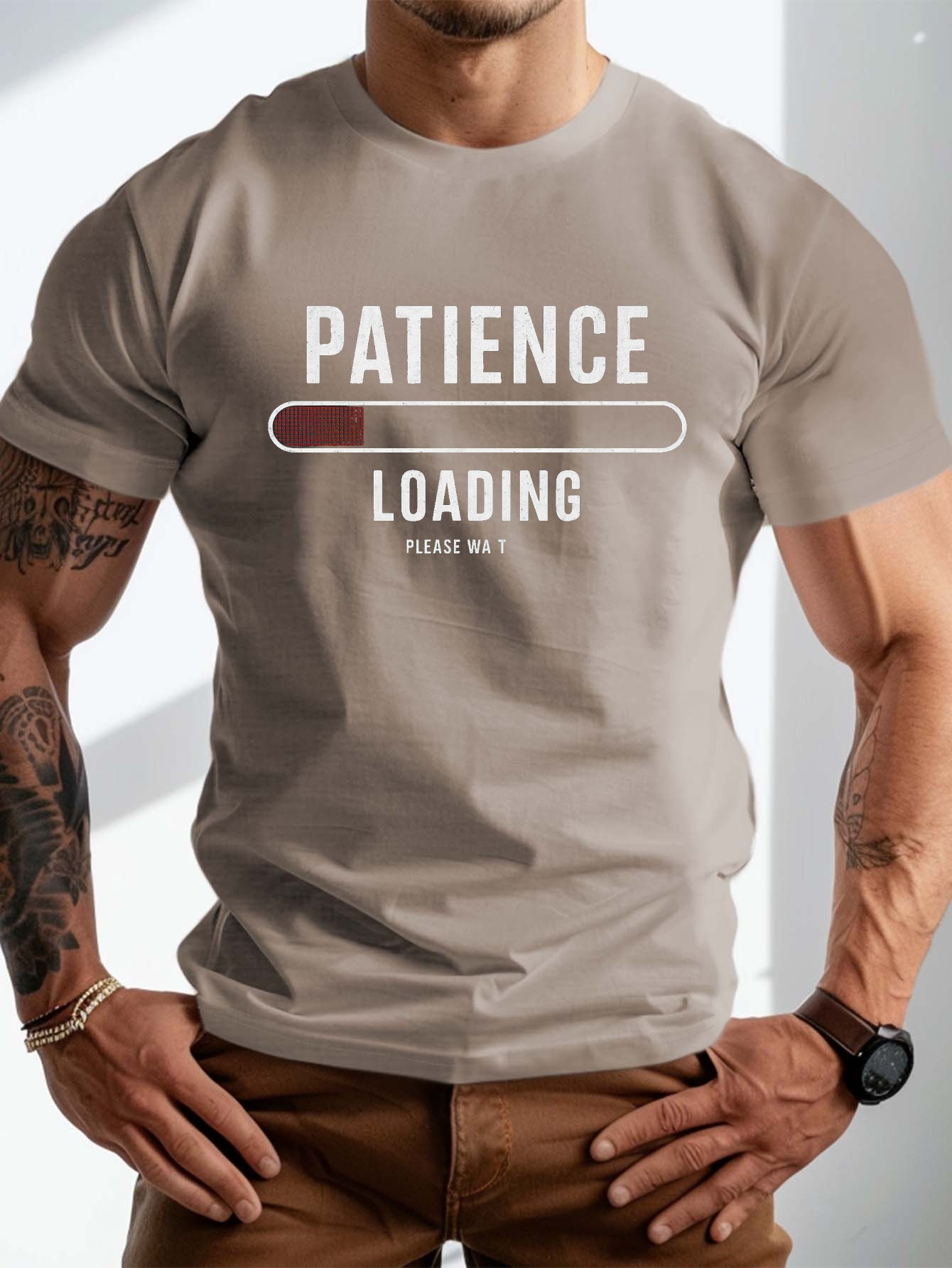 plus size men's summer t-shirt, Patience Loading Progress graphic print short sleeve tees trend casual tops for daily life, big & tall guys